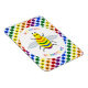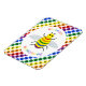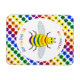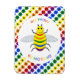Este imán impresionante presenta una imagen de diseño gráfico de color arcoiris de una abeja. La abeja tiene un cuerpo amarillo con ojos negros, piernas y antenas y 5 rayas en su vientre, una en rojo, naranja, verde, azul y púrpura. Hay un texto de color arcoiris alrededor de la abeja que dice "Sé orgulloso de ser el que eres" También hay una selección de flores de color arcoiris en el fondo.