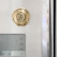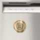 Imán promocional simple para su negocio sobre un fondo metálico de imitación dorada. Agregue su logotipo o código QR y dos líneas de texto personalizado, como el nombre de su empresa, el lema, gracias o deje en blanco.