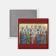 Un imán con un ícono de los Sagrados Saludables y No mercenarios.