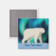 Un oso polar lindo (Ursus maritimus), hecho en un estilo simple, primitivo o ingenuo, camina sobre el hielo polar, los Aurora Borealis (aurora boreal) brillan brillantemente en el fondo. Personalizar agregando su propio texto.