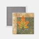 Imán cuadrado con la imagen de una hoja de arce verde, naranja y amarilla sobre verde edredón y marrón. Vea toda la colección del Mimán de Acción de Gracias en la categoría HOME en la sección HOLIDAYS.