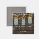 Barnwood rústica, colgando luces de cuerdas con hojas caídas en una boda de un frasco de albañil, salva los imanes de fecha. También hay productos de coincidencia disponibles.