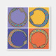 Cuatro serpientes azules morden sus cuentos en estas plazas azules, rojas y naranjas.