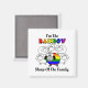 Este imán de Orgullo Arcoíris presenta un rebaño de ovejas blancas. Frente al rebaño hay una oveja singular con los colores de la bandera LGBTQ. El texto dice, 'Soy La Oveja ARCOÍRIS De La Familia.' El color de fondo se puede personalizar.