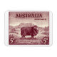 El sello de 1934 de cinco centavos Merino Sheep de Australia. Un gran diseño filatélico con un carnero Merino visto en un paisaje australiano.
