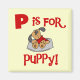 ¡El texto rojo lee "P está para el perrito" en estas camisetas lindas del diseño del perrito, tazas, las bolsas de asas, tarjetas, y más, grandes para cualquier persona de cualquier edad que ame perros!