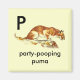P en el alfabeto de la aliliteración animal. Fiesta-pooping puma