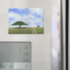 Esta pintura de gouache invita a un espectador a recorrer un pacífico camino africano bajo el infinito cielo azul.