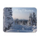 Un hermoso paisaje de invierno nevado con el texto "Feliz Navidad" y una plantilla para el nombre de la familia. La foto fue tomada en el desierto de Lappland, al norte de Finlandia.
