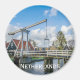 Pintura de la calle y del tradicional holandés levantando puente de madera en el pueblo de pescadores de Volendam, Holanda del Norte, Holanda.