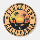 Palm de Souvenirs Retro Sunset de Stockton California. Stockton California. Este diseño retro ofrece un gran Navidad o regalo de cumpleaños para los amantes de la playa de St Stockton. El diseño retro de las vibraciones de verano es un regalo perfecto para los amantes de los viajes y de los destinos tropicales.