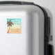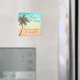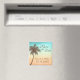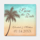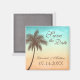 Un cielo azul tropical y una textura de arena con un ilustracion de palmera marrón. Bodas tropicales elegantes y de moda ahorran el imán de la cita. Perfecto para una boda de destino.