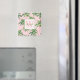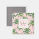 Este bonito imán cuadrado de inspiración costera monogramado cuenta con palmeras verdes tropicales en rosa suave. Personalice el monograma con su elección de nombre e inicial.
