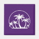 Ilustracion vectorial de una puesta de sol tropical y palmeras en un pequeño paraíso de vacaciones.