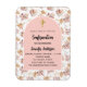 Marco de arco sobre un patrón de pampas hierba y flores rosadas y una cruz dorada. Personalice y agregue un nombre y detalles.