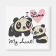 Dos osos panda, uno pequeño y otro adulto, un corazón rosado, flores rosadas y texto que dice Me encanta mi tía en camisetas de oso panda, bolsas, tazas, botones, tarjetas y otros artículos.