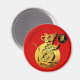 Composición con papel tradicional chino dorado cortado de Rat colocado frente a un círculo dorado, pequeñas letras modernas para el Año de la RAT 2020 y símbolo de Rat chino sobre un pequeño círculo negro. Diseño en imán de refrigerador redondo. Disponible en un imán de fotos flexible. Tarjeta de saludo, invitación y más. Perfecto para el Año Nuevo Chino de la Rata 2020.