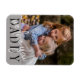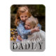 Imán fotográfico moderno con una sola foto de un niño y "We Love You Daddy" (Te queremos papá) con letras modernas en un fondo gris. Hermoso regalo para los papás.