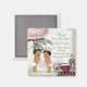 Imanes para guardar fecha de baby shower con adorables bebés príncipe y princesa en un bonito fondo vintage. Este imán para guardar fecha de baby shower se personaliza fácilmente para su evento simplemente agregando sus detalles en el estilo de fuente y redacción de su elección.