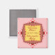 Imán para recuerdos de boda de seda y encaje rosa amarillo rojo : Imán para recuerdos y anuncios de bodas o compromiso. Diseño llamativo en rosa y amarillo vibrantes con adornos rojos oscuros