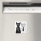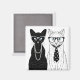 Este diseño presenta un gato negro de sexo femenino vestido con collar de perlas y un gato blanco de sexo masculino vestido con corbata de puntos.