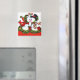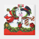 Un encantador imán vintage de Navidad con una linda pareja de nevados besándose bajo el mistletoe.