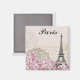 Este imán hermoso cuenta con un dibujo vintage de la Torre Eiffel de París con flores rosas.