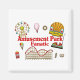 ¡Con todas las cosas divertidas en el parque de atracciones! Una montaña rusa, coches parachoques, paseo en hilera, palomitas de noria, golosinas, gafas de algodón, gaseosa pop, pretzel, ficha de arcada y un colorido cono de nieve.