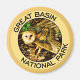 El logotipo del Círculo de Vida Silvestre del Parque Nacional de la Gran Cuenca incluye una lechuza. La imagen tiene un aspecto pintado e impresionista con pinceladas de pincel. Aparatos y souvenirs del Parque Nacional de la Gran Cuenca