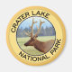 El logotipo del Círculo de Vida Silvestre del Parque Nacional Crater Lake incluye un "Elk". La imagen tiene un aspecto pintado e impresionista con pinceladas de pincel. Aparatos y souvenirs únicos del Parque Nacional Crater Lake.