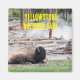 Revive la belleza del Parque Nacional Yellowstone con un relajado Bison al lado de un géiser humeante con este imán!