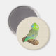 Un perdigón verde sobre una rama. El verde es el color original de los perdigones salvajes.