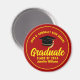 Este moderno imán para graduados de grado rojo y amarillo presenta su nombre de instituto o universidad para la clase de 2025. Personalizar con tu año de graduación bajo el guión manuscrito de la moda y gorro negro para un gran regalo personalizado de obsequio para una fiesta de graduación.