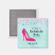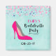 Magnate de la fiesta de la soltera con un zapato de tacón alto en rosa caliente. Confeti rosado salpicado a lo largo de la parte superior. Está situado sobre un fondo acuático verde menta.