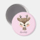 Imán de reno rosa pastel dulce, lindo y ondulado con tu propio nombre personalizado.