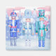 Tres exultantes petardos, con regalos encantados de la temporada invernal, se visten con vestimenta regal en medio de un bosque de color pastel besado por las heladas. Ilustracion original de la artista Noël Snow.