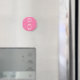 Imán rosa con pastelitos y cerezas. Ideal para los recordatorios colgados en la nevera. Cita divertida, "Haz feliz a alguien".