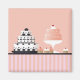 Pasteles Art Déco con manteles de rayas en un fondo rosado. Imagen de deliciosos pasteles decorativos que te encantaría tener en tu cocina (y mano...y boca) YUM
