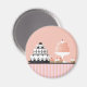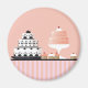 Pasteles Art Deco sobre un mantel a rayas que se ven simplemente deliciosos. Un imán muy bonito.
