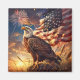 Este imán se muestra con una bandera patriótica festiva, fuegos artificiales y una impresión artística de águila.