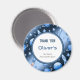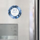 Este imán presenta un cautivador diseño cósmico azul con cohetes, planetas y estrellas pintados a mano en un estilo acuarela suave. Los tonos luminosos de la marina, el azul celeste y el blanco inmaculado crean un ambiente fuera de lo común. Perfecto como un favor de agradecimiento para las celebraciones de cumpleaños de los niños, este diseño puede ser personalizado con un nombre o detalles de evento para añadir un toque único a su decoración fiesta.