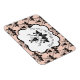 Expresa tu amor por los gatos con un imán flexible adornado con un patrón de aspecto damasco de bonito con un motivo de gato lineal en una pose relajada rodeada de hojas de nabo y flores en silueta negra. Personalizar fácilmente el color de fondo y el texto para adaptarse a tu estilo o decoración.