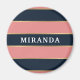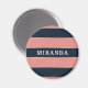 Estiloso, femenino, audaz rayas modernas de color rosa y azul marino separadas por bandas doradas más pequeñas. Una plantilla de nombre de personalizable se muestra encima del patrón. Un regalo personalizado con un ambiente femenino.