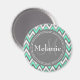 Guay lindo moda trendy patrón tribal de chevron azul, gris y blanco zigzag con placa de nombre gris para su personalizado monograma letra inicial y nombre. Gran regalo para niñas que aman los patrones geométricos y los regalos monogramados.
