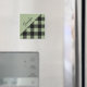 Imán de patrón de comprobación de placa verde con nombre personalizado.