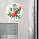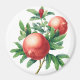 Fruto rojo granado con patrón de hojas verdes sobre el fondo blanco