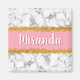 Un elegante fondo de mármol blanco y gris moda con un borde rosa adornado con un purpurina de imitación de oro. El diseño muestra una plantilla de nombre de personalizable.