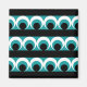 Ilustracion de patrones geométricos con rayas, círculos y formas redondeadas en color turquesa, negro y blanco