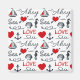 Patrón náutico sin mar con símbolos náuticos (velero, ancla, olas, caballito de mar, concha de mar) y decoración de corazones rojos con diseño de texto sobre fondo blanco