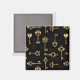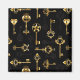 Patrón incomparable de llaves antiguas, doradas y de silueta sobre fondo negro.